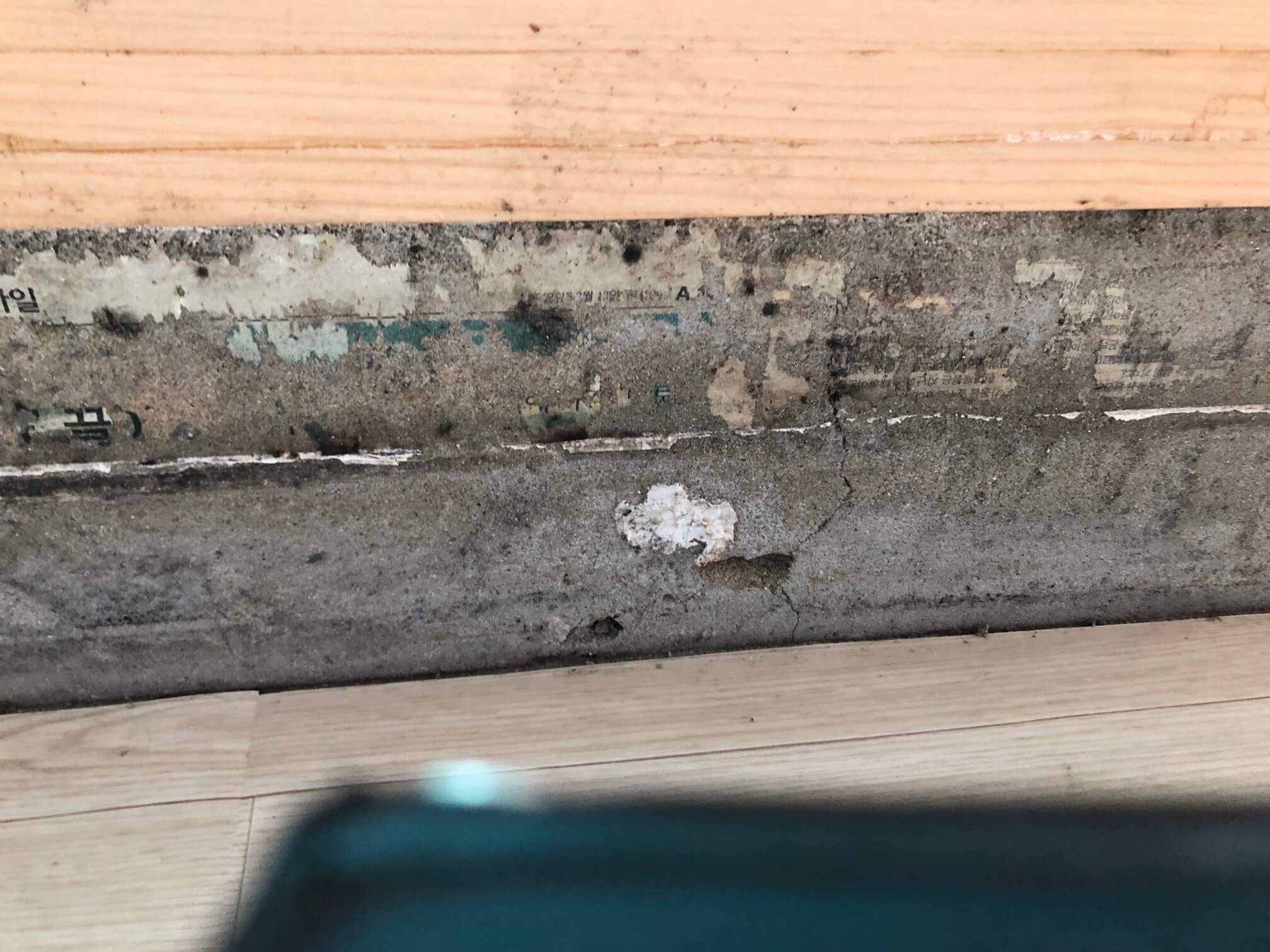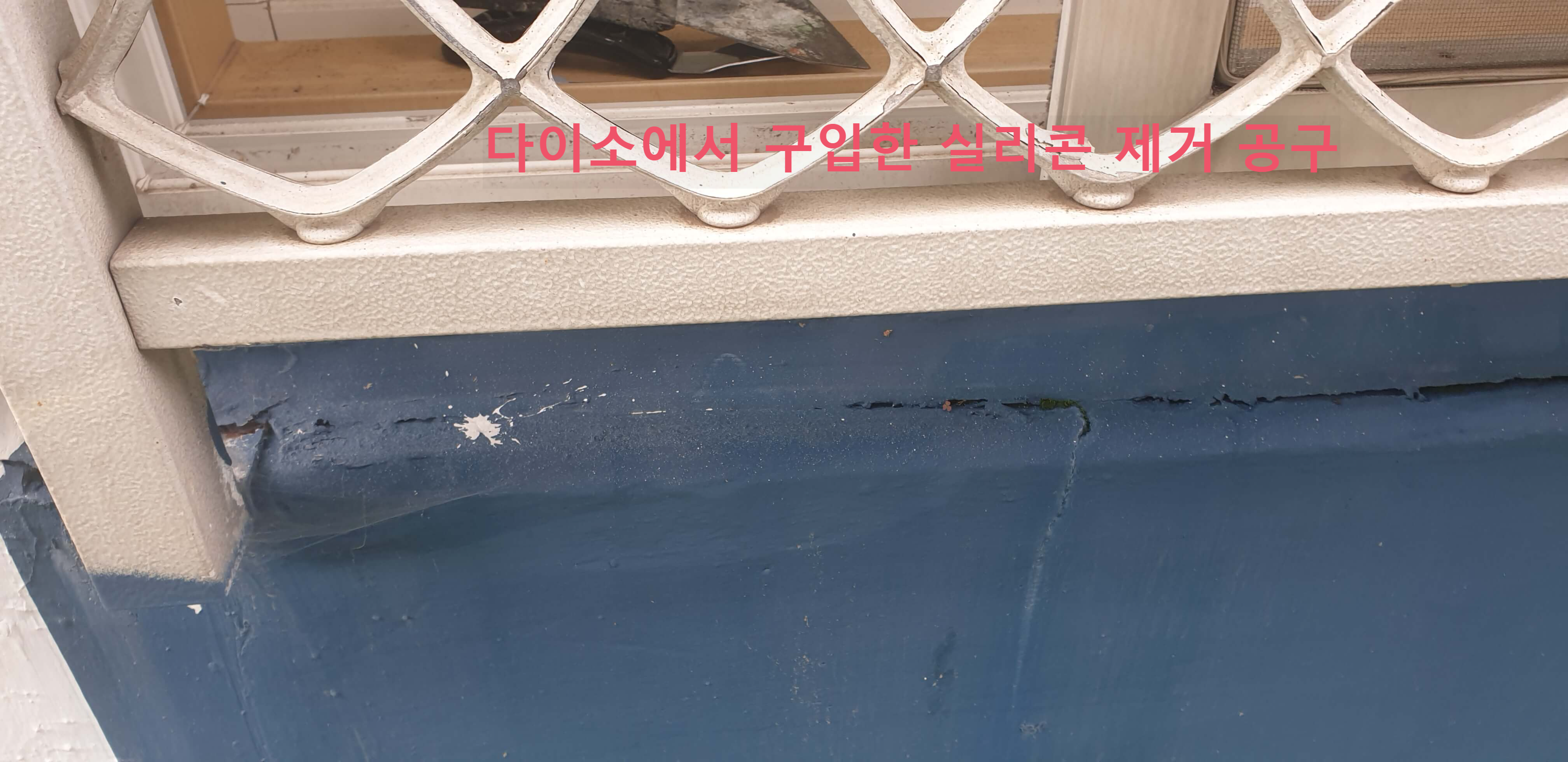 보라, 발코니 갈라진 틈새로 습기가 유입되기 좋게 되어 있었다. 진작 이것들을 제거하고 실리콘을 새로 쏴주었으면 발코니 습기 누수가 발생하지 않았을 텐데 안타까웠다.