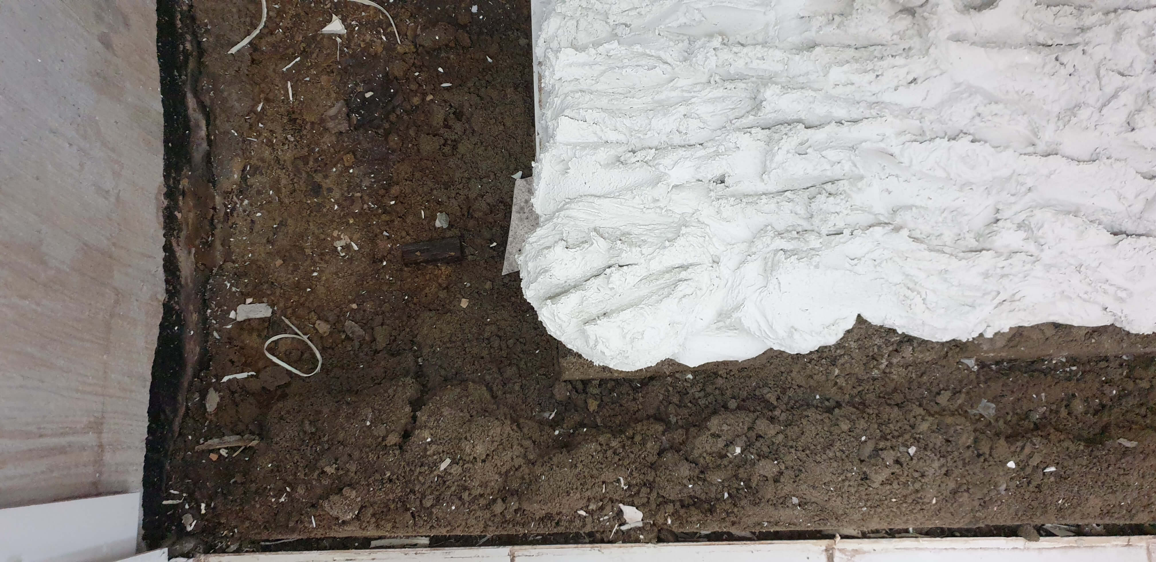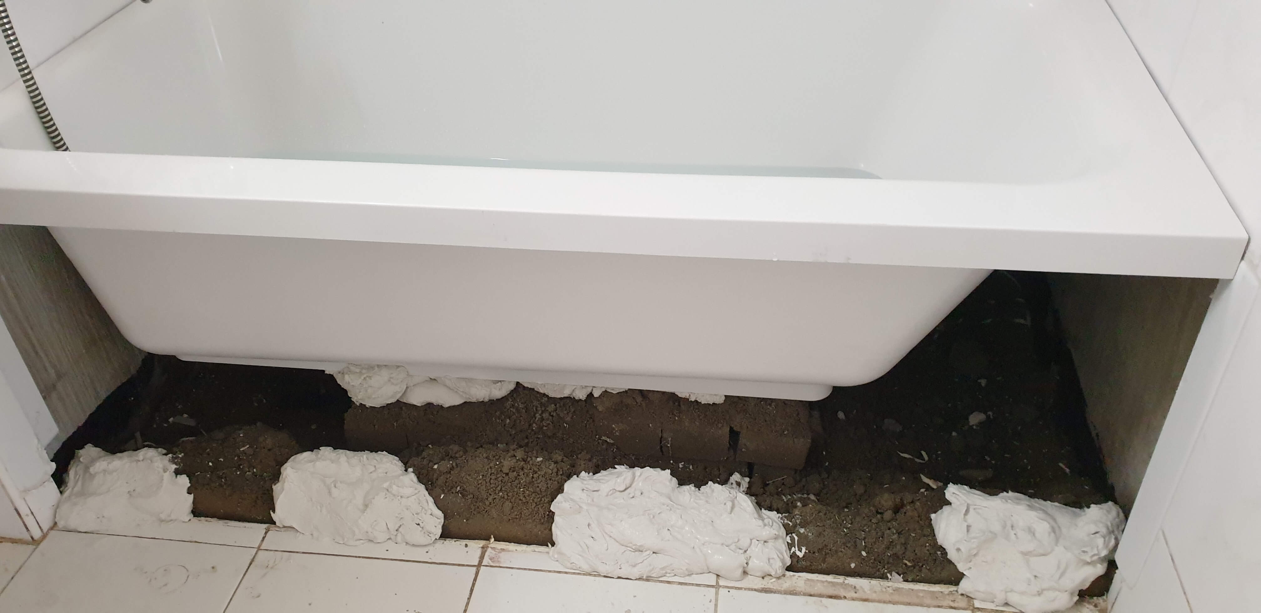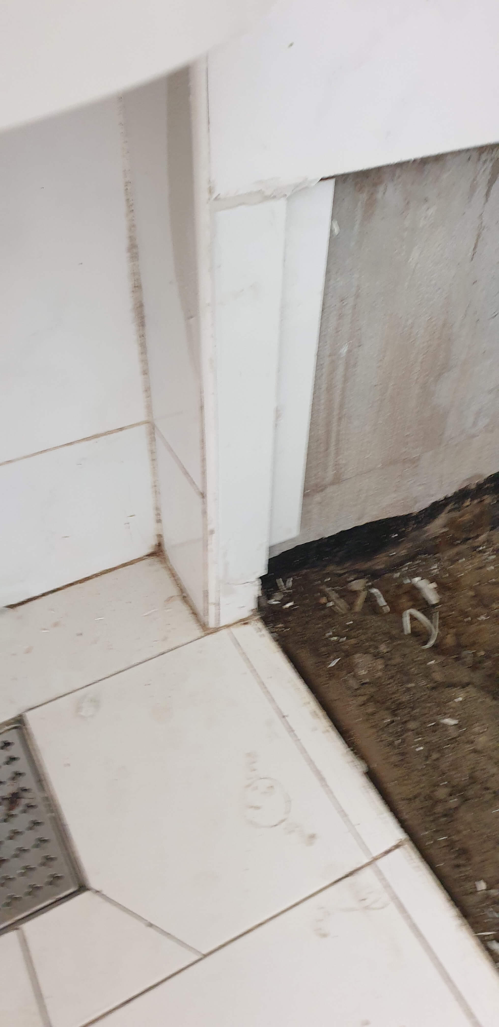 새로 욕실에 욕조가 설치되었다. 고정되는 과정이었다.