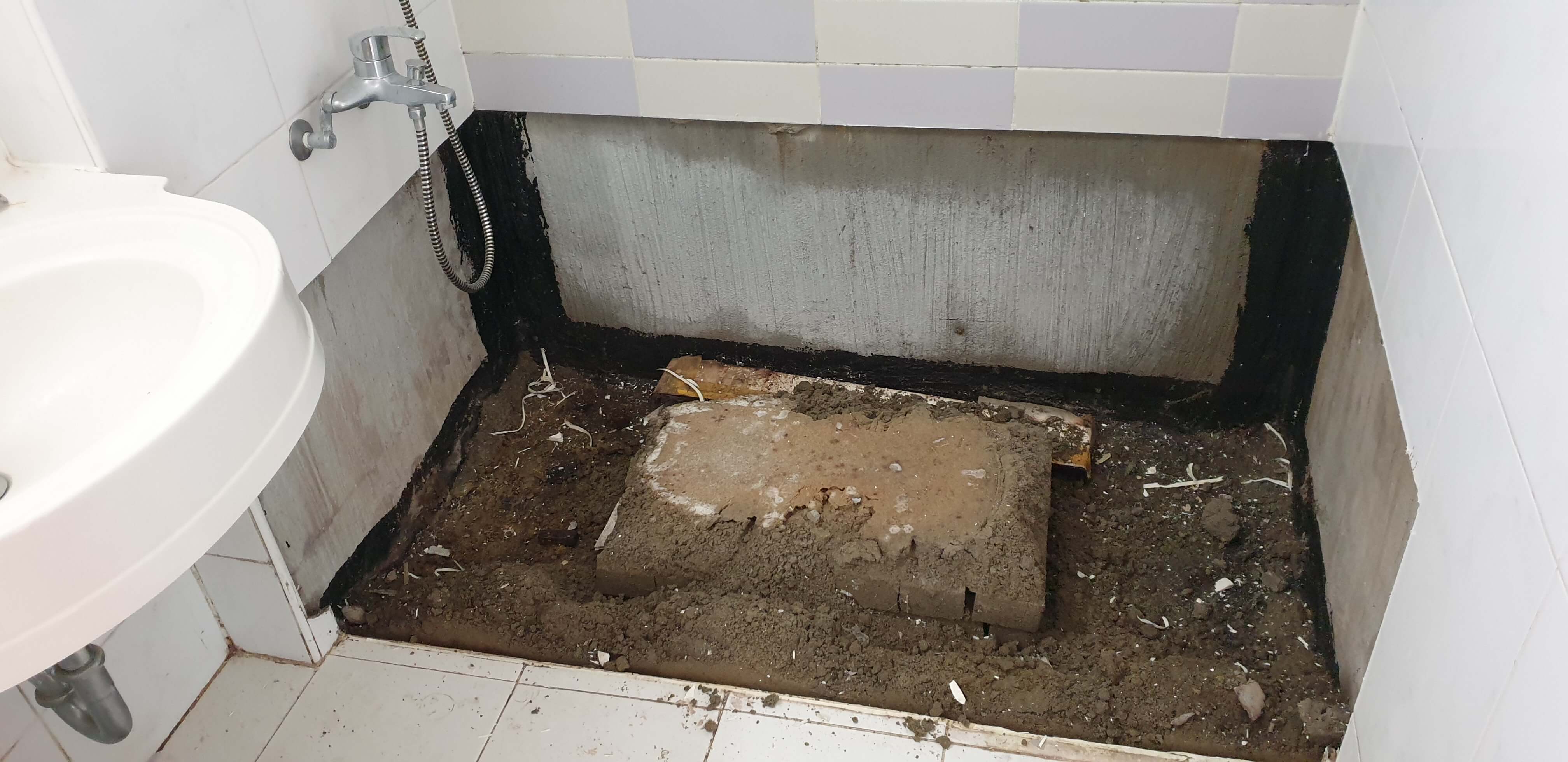 그리고 욕조에 물을 받아서 물의 무게로 욕조를 바닥에 딱 고정시켰다.
