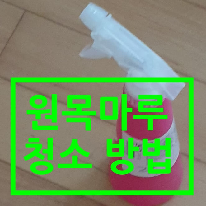 장판은 습기에 강해서 미리 세제 희석 시킨 물을 넉넉하게 뿌릴 수 있지만, 원목 마루 클리닝은 원목 마루가 습기에 취약해서 세제 물을 뿌릴 수 없다. 얇게 분사시키는 용도로 분무기로 뿌려대는 방법이 좋다. 신속하게 구정물을 긁어모아 버리고, 마른 수건으로 남은 세제를 닦아낸다.